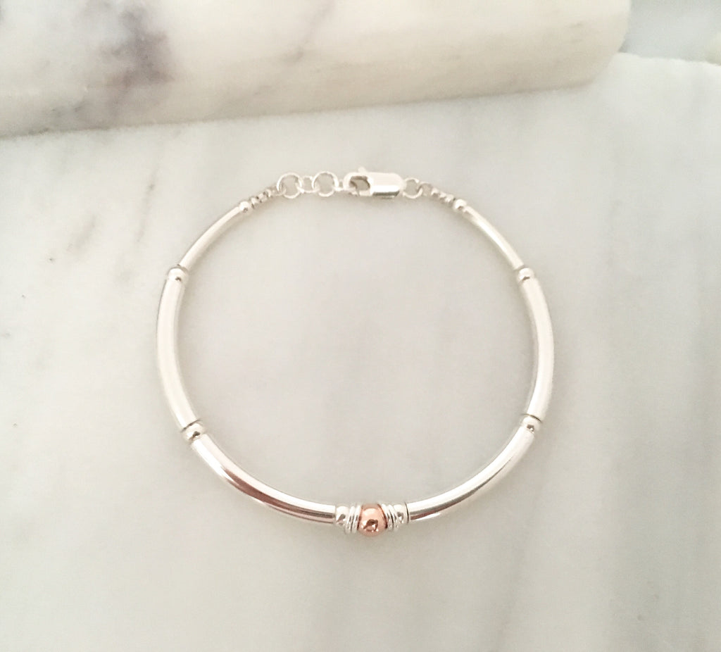 New Simplicity Bracelet in Sterling Silver + 5mm Rose Gold Plated Sterling Silver Bead
